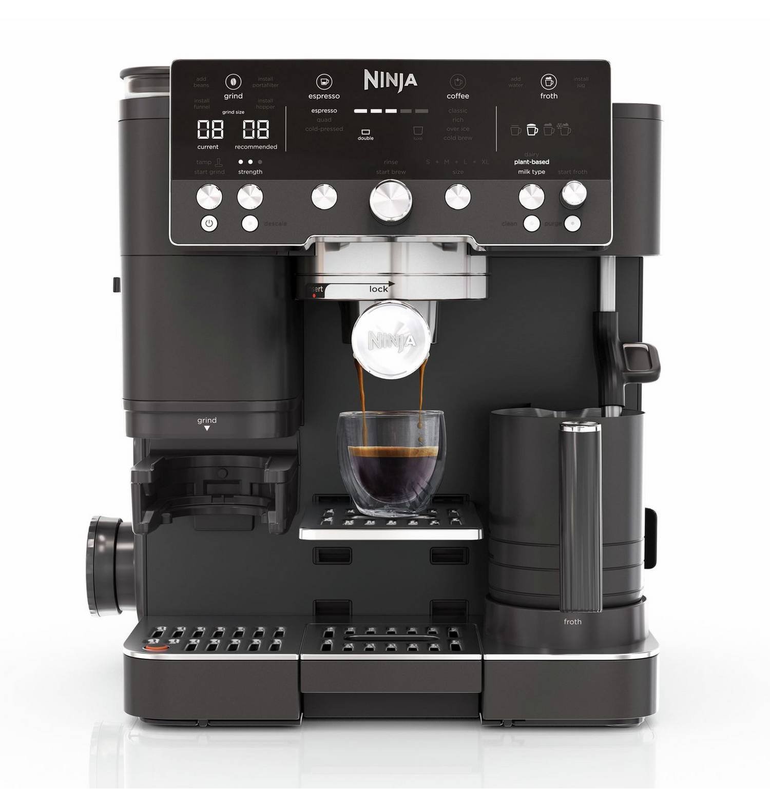 Discover the sleek Midnight Black Luxe Cafe Premier, a versatile 3-in-1 coffee machine by Ninja. This all-in-one appliance lets you craft an array of premium hot and cold beverages in minutes, bringing the café experience straight to your kitchen. With a built-in grinder and convenient tamper, every cup feels barista-made.